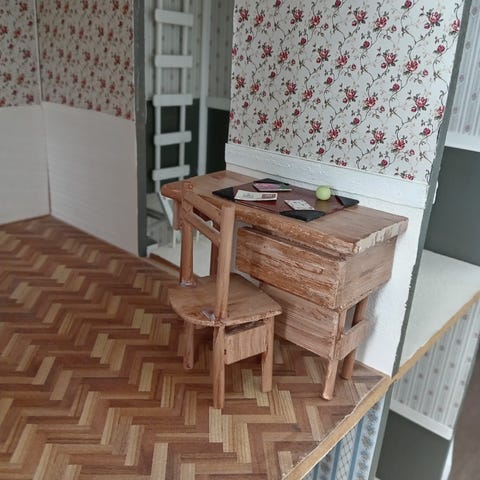 Puhelin, kramofoni, kello, kahvimylly, ompelukone ja kastelukannu.