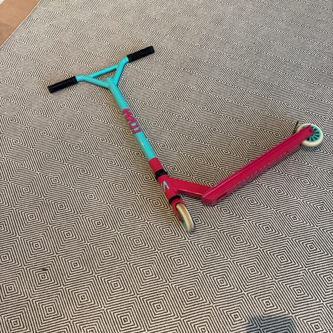 Skootteri pienille tytöille (2–5 v), kolme pyörää. Ihan hyvässä kunnossa, mut käytön jälkiä löytyy aika paljon.