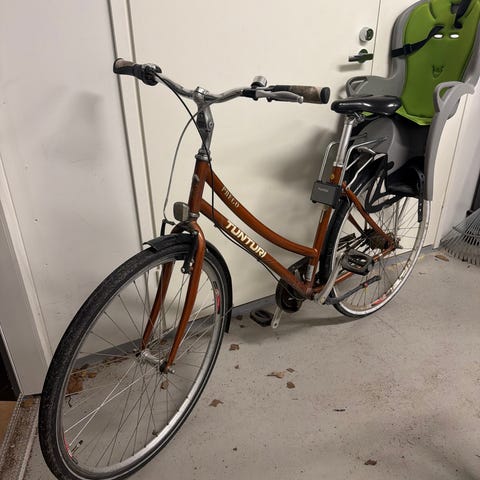 Kolmevaihteinen, jalkajarrullinen kaunis Tunturin Daami pyörä. Eteen myös käsijarru. Runkolukko ja avain. Satulassa halkeama ja rungossa pientä ruostumaa, mutta muutoin hyväkuntoinen eli heti valmis käyttöön. Pyörässä myös dynamolla toimiva etuvalo joka ei toimi mutta pitäisi olla korjattavissa.