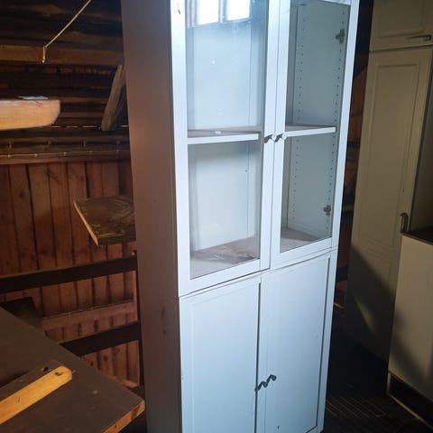 Mäntyinen uudenveroinen lasiovellinen seinäkaappi. Korkeus 49, leveys 59 ja syvyys 24 cm. Sisäosan korkeus 36 cm. Kuvissa on kaapin välilevy irrallaan kaapin alla tukemassa kuvauksen aikana. Kuljetus onnistuu Iisalmen kaupunki alueelle.