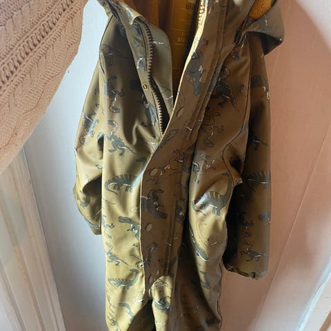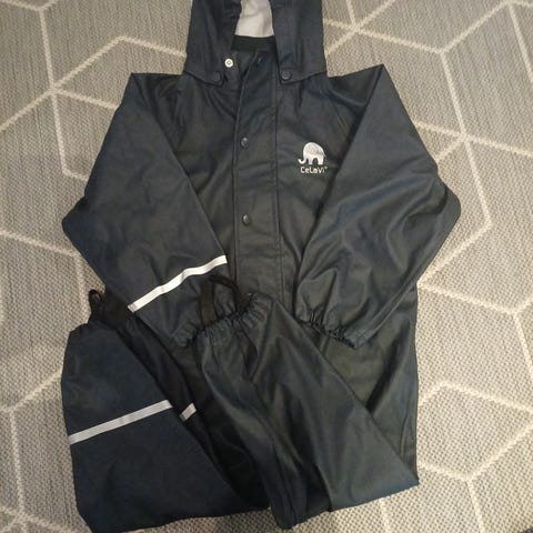 Ehjä ja vielä siisti vaaleanpunainen sadehaalari, koko 100cm. Jalkalenkit vähän rispaantuneet, mutta vielä toimivat.