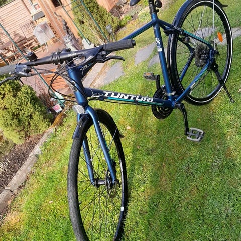 Tunturi RX500 T5 hybridipyörä M / 28 miehille. Pyörässä on miesten runko ja suora ohjaustanko. Väritys on musta vihrein ja valkoisin tehostein. Varusteluun kuuluu etu- ja takalokasuojat sekä tavarateline. Pyörä soveltuu kaupunki- ja työmatka-ajoon sekä kevyille retkille.