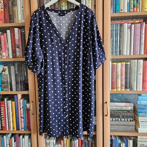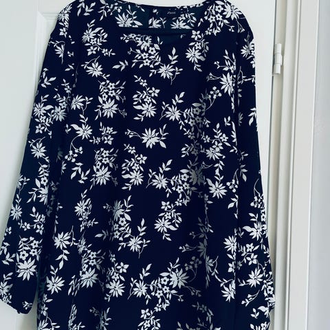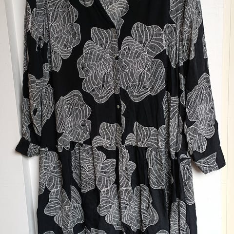 Kauniisti laskeutuva viskoositunika. Takakpl pidempi kuin etukpl. Takakpl keskisauma tekee tunikasta kauniisti istuvan.