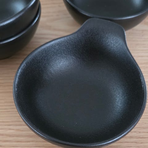 H&M Home mattamusta astiasetti, johon kuuluu 6x kulhoa ja 5x lautasta. Kahdessa kulhossa pienet kolhot reunassa. Muuten hyväkuntoiset.