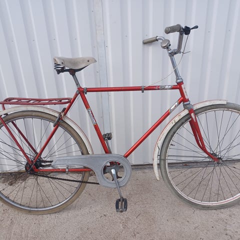 Miestenpyörä aito Tunturi 1950 luvulta, entisöitäväksi, kunnostettuna käyttöön tai vaikkapa pihalle kukkatelinneksi. Alkuperäinen maali, mitä ruosteelta on jäänyt näkyviin, alkuperäiset osat vain eturatas on vaihdettu, tavarakotelo telineen alta puuttuu, alkuperäinen lukko 1-avain, toimii, lienee tarkoitettu rehellisille lainaajille, ketju puuttuu renkaat täysin hajalla. Laakerit tuntuvat tiukoilta ja liikkuvat kevyesti, takapyörän jarru-/veto rumpu vaatii huollon pyöritellessä tahmea. 1-vaihe eteenpäin ja pakki puuttuu. Runko ehyt ei ole hitsattu, satula ehjä ja soittokellokin rämisee. Ollut n. 30v sitten mökkipyöränä ja nyt ollut ulkovarastossa säilössä.