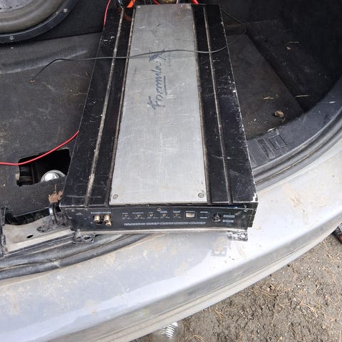 Pioneer GM-1000 2x60W autovahvistin. Malli on tarkoitettu auton 12 V -järjestelmään. Mukana tulee liitin- ja RCA-johdot kytkentää varten.