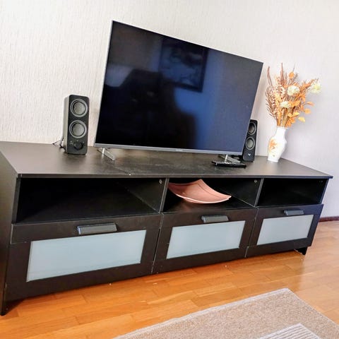 Maskusta ostettu TV-taso kahdella vetolaatikolla.