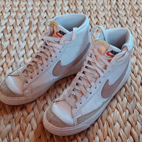 Nike tennarit, koko 38. Värinä vaalea/valkoinen, jossa kontrastitikkauksia. Päällinen tekstiilimateriaalia, nauhakiinnitys ja kumipohja. Soveltuvat arkikäyttöön ja vapaa-aikaan.