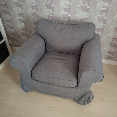 Myyntiin kuvan mukaisesti mustat päälliset ja pehmusteet nojatuoliin sekä rahiin. Myydään pakettina. Nouto Niinivaara
