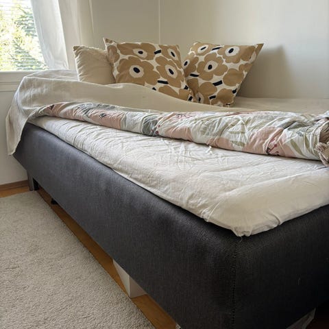 Myydään 120cm leveä runkopatjasänky ruuvattavilla jaloilla. Säilytyksessä lämpöisessä varastossa.