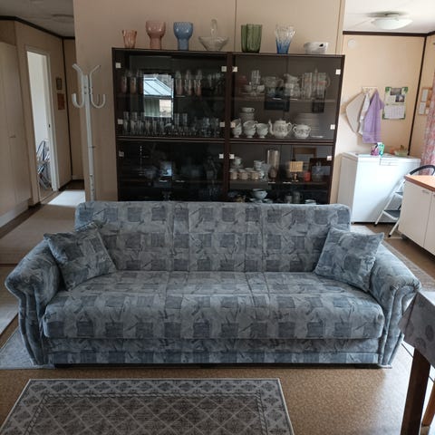 Myydään hyväkuntoinen harmaa vuodesohva. Divaanin alla säilytystila.
