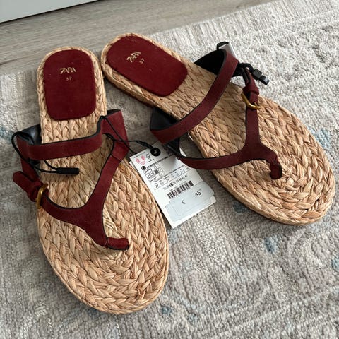 Zara sandaalit, koko 37. Väri vaaleanharmaa. Malli on avonainen liukusandaali, jossa leveä päälliremmi ja kevyt pohja. Sopivat arkeen, sisäkäyttöön tai kesäkävelyihin. Materiaali synteettinen.