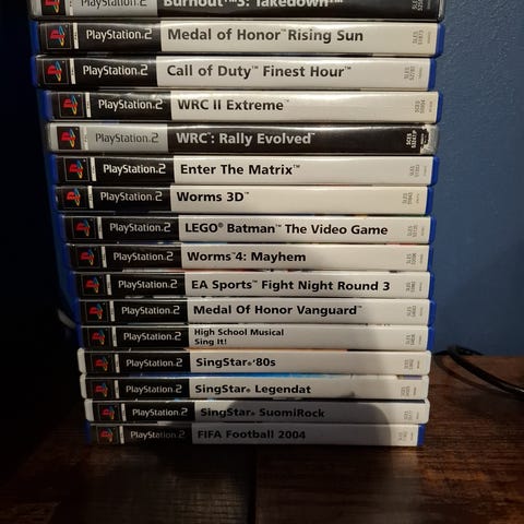 Käytön jälkiä levyissä ja koteloissa, joitain mainittu kuvauksessa.