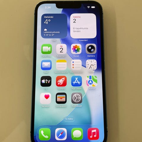 Musta Apple iPhone 13, tallennustila 128 GB.