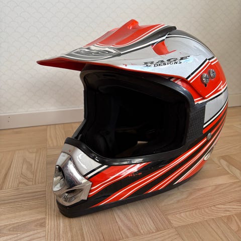 Lasten crossikypärä, muutamia kertoja ollut käytössä. S-koko(55-56). Kulkeutuu turku-salo välille.