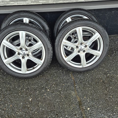 17 tuumaiset alumiinivanteet 215/50/17 kesärenkailla. Pintaa renkaissa noin 4-5mm, paistoleima 2020 ja 2021. Pulttijako 5x100 keskireikä 54,1mm