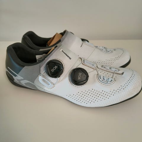Shimano RX800 naisten pyöräilykengät. Koko 40 (vastaa ehkä noin 39/39,5 kokoa) eli kapeahko lesti. Pyöräilty edeltävä kesä ja jäänyt viime kesäkin käyttämättä uusien kenkien vuoksi. Lähes uutta vastaavat. Pohjassa toki käytön jälkiä. Ei klosseja mukana.