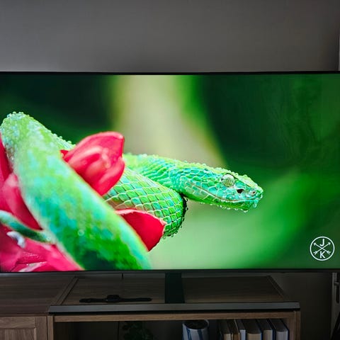 Sopiva 55-tuumainen näyttö ja hienon keskijalustan ansiosta sopii melkein kaikkiin tv tasoihin.