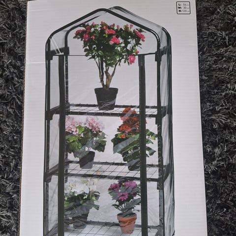 Ikea Socker minikasvihuone. Valkoinen metallirunko ja muoviseinät.