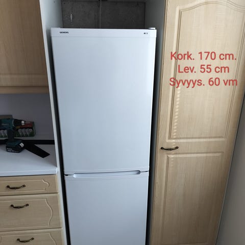 Hyväkuntoinen, todella vähällä käytöllä ollut jääkaappi-pakastin. Kokonaiskorkeus 125cm. Vain nouto ja omat kantajat.