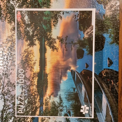 Kaksi That's life-palapeliä. Kerran koottu. Palat pussitettu. Kaikki palat tallessa.