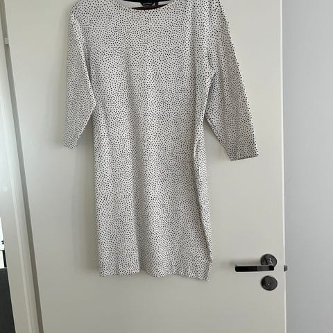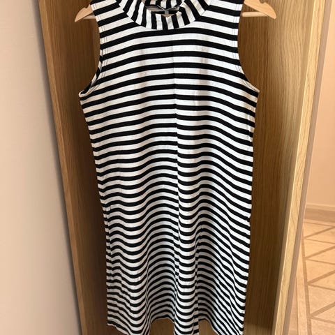 Marimekko mekko naisille, koko M. Lyhythihainen, suoralinjainen, tai aavistuksen A-linjainen malli. Materiaali on puuvillaa. Mekossa on suuri, graafinen kirjava kuosi tummanvihreän ja vaalean sävyissä. Sopii arkikäyttöön ja kesäiseen pukeutumiseen. Joustava.
