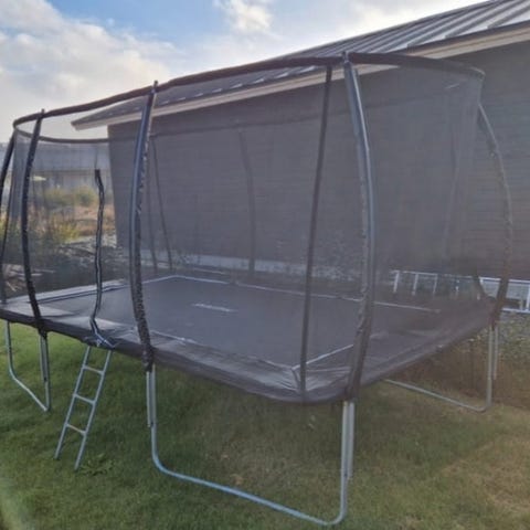 Myydään täysin ehjä trampoliini. Kuvasta poiketen turvaverkko ja matto uusittu keväällä 2025. Purettu aina talveksi, myydään purettuna. Vain nouto.