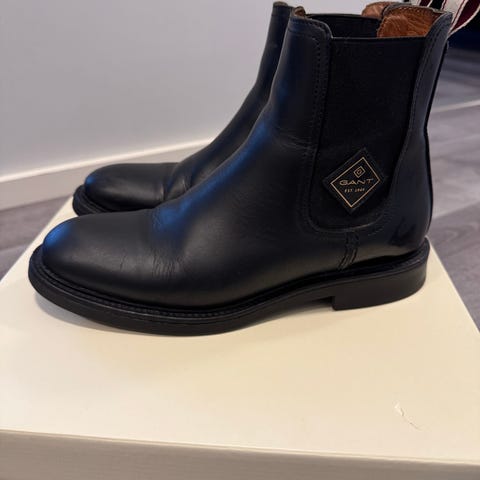 Gant nahkanilkkurit, koko 38. Väri musta. Materiaali nahkaa, sivuilla joustavat resorit. Sisäpuolelta vaaleaa nahkaa, näkyy viimeisessä kuvassa. Matala korko ja kumipohja. Sopii hyvin kevät- ja syksykengiksi.
