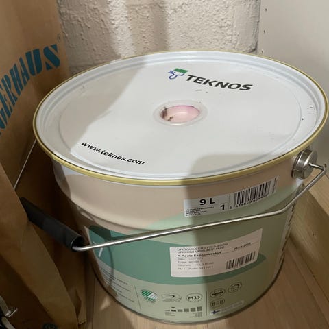 Teknos Biora 7 sisustusmaali. Vesiohenteinen, himmeä sisäseinämaali, sävynä harmaa (Pro Grey 1931 / TV 1931). Noin puoli purkkia jäljellä. Nouto Ylästöstä