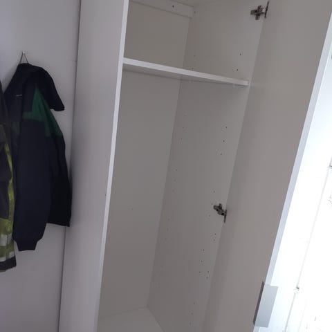 Korkea kaappi on 50 cm leveä ja 196 cm korkea + 15 cm jalat