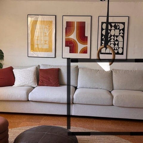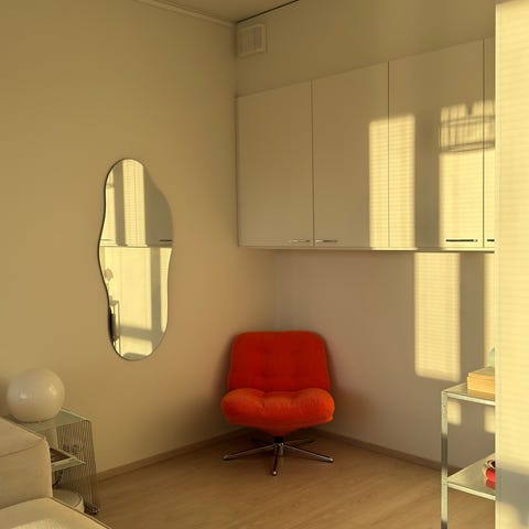 Nojatuoli on mukava ja pehmeä istua, mutta meille vähän turhan iso.