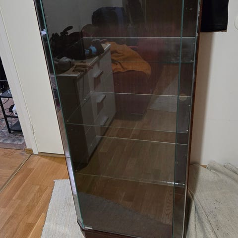 Pituus 240 cm, korkeus 190 cm, syvyys 35 cm, vitriinin ja leveämmän avohyllykön leveys 80 cm, kapea avohyllykkö leveys 40 cm, kulmahyllykön leveys 35.5 cm.