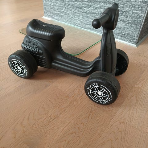 Plasto potkuauto lapsille. Materiaalina kestävä muovi, väri pinkki ja mustat pyörät. Soveltuu pienten lasten leikkeihin ja tasapainon harjoitteluun sisällä tai ulkona valmistajan ohjeiden mukaisesti.