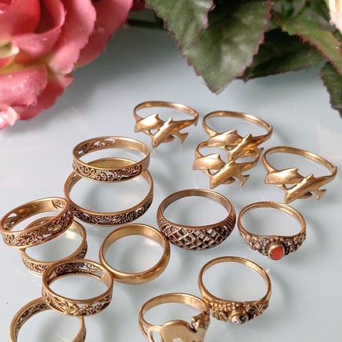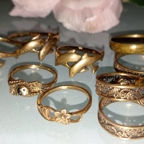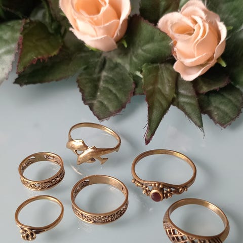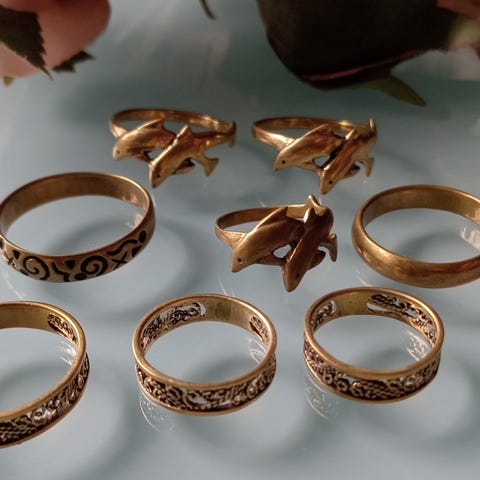 Pronssi sormukset 6kpl koko n.14,16.5,17 ja 20