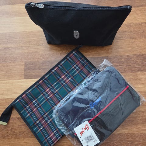 Myydään uudet kosmetiikkalaukut. Koko: 33x23cm. Metallivetoketju, vuoritettu, 100%puuvillaa. Hinta 25€/kpl tai kaikki yhteensä 60€. Mmm.