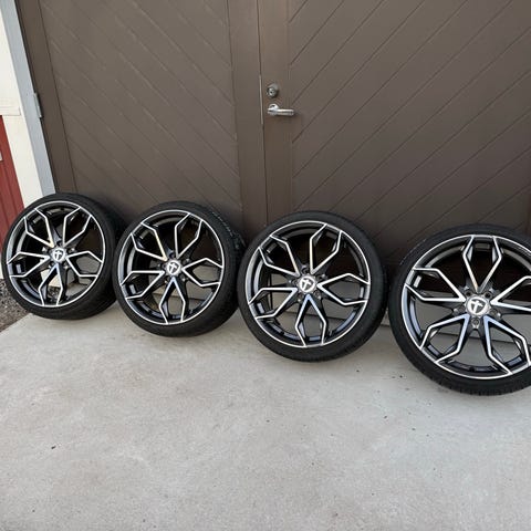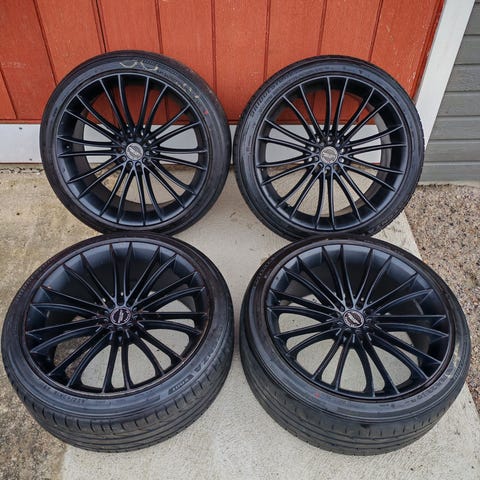 Ispirin kolhuttomat laatuvanteet 8,5” leveet ja ET 42. Päällä lähes loppuun ajetut Continentalin Sport Contact 7.