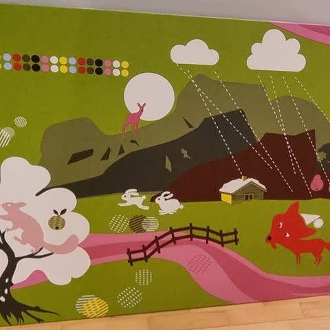 Katso toinen ilmoitukseni taulun kanssa erinomaisesti yhteen sopivista lastenhuoneen verhoista, voin myydä pakettihintaan.