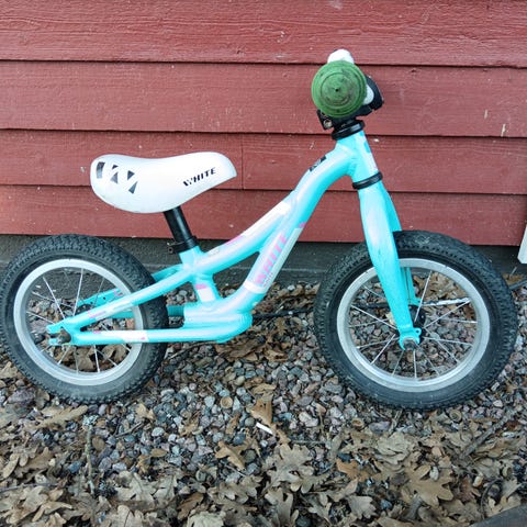 Jupiter Potku 12" potkupyörä lapsille. Pyörässä on 12 tuuman renkaat, matala runko ja satula, jotka helpottavat kyytiin nousemista ja tasapainon harjoittelua. Väritys on valkoinen vihreillä yksityiskohdilla. Potkupyörä soveltuu pienille lapsille tasapainopyöräksi ennen polkupyörään siirtymistä. Kunto on käytetty, pienet naarmut ja kulumat näkyvät, mutta eivät vaikuta ajamiseen. Vain nouto Espoon Matinkylästä.