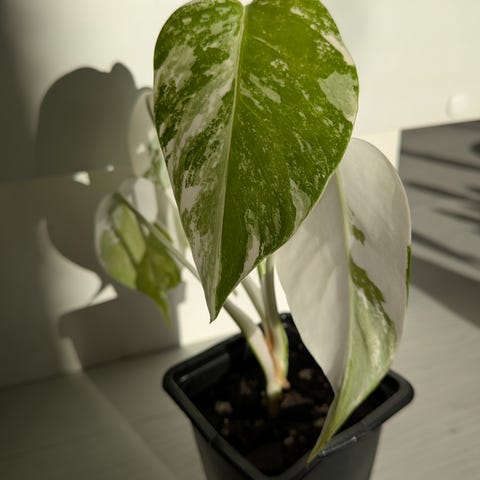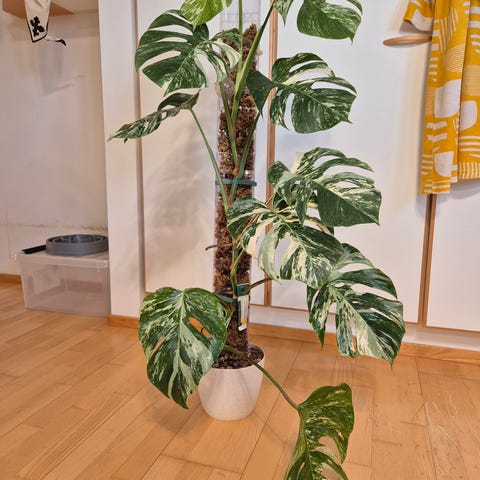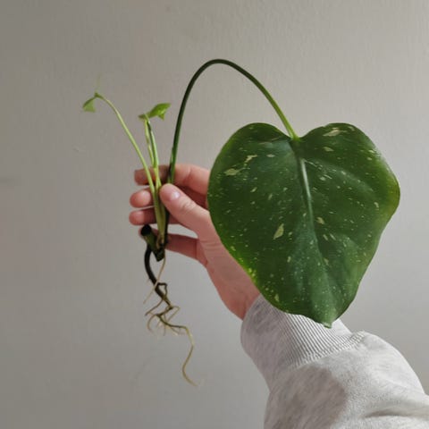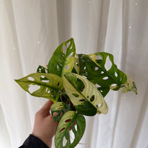 Monstera variegata, jossa hieno väritys ja juuret lähteneet kasvuun