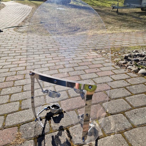 Moottoripyörän etukate, jossa integroitu tuulilasi ja kiinnikkeet ajovalon ympärille. Väri musta, tuulilasi kirkas. Sopii moottoripyörän etuosan suojaksi ja aerodynamiikan parantamiseen. Sisäpuolella metalliset kiinnitysraudat asennusta varten. Tarkka yhteensopivuus ja mitat on hyvä varmistaa ennen asennusta omasta moottoripyörämallista.