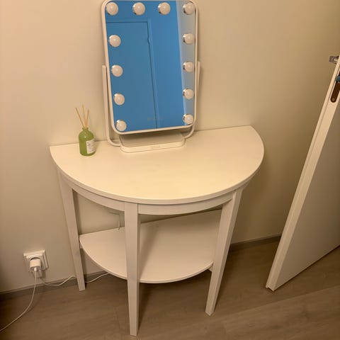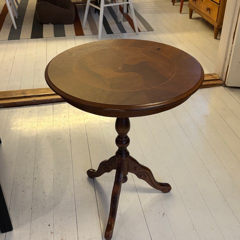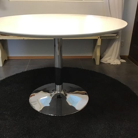 Myydään kuvissa näkyvä pöytä. Täyttä puuta sorvatulla jalalla. Pöytä on tukeva.