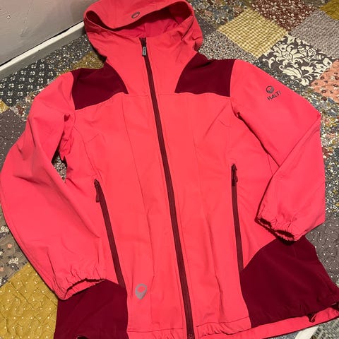 Punainen, hieman vaaleampi todellisuudessa kuin kuvassa. Joustava kevyt takki.