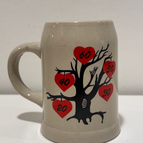 Päivin öin tuotemerkin käsintehty muki kauniilla kuvioilla. Lasituksessa pientä rösöisyyttä. Myynnissä myös toinen väri.