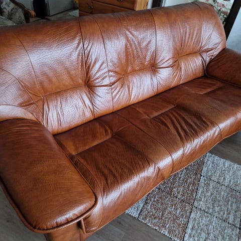 Pohjanmaan kalusteen, kotimainen nahkasohva. Muutaman vuoden vanha, hyväkuntoinen.