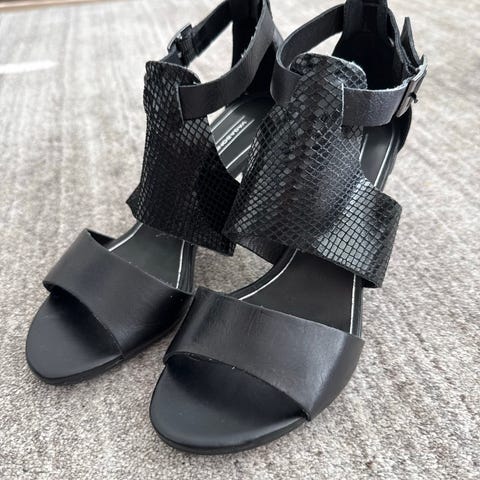 Vagabond korkokengät, koko 37. Väri musta. Kengissä on terävä kärki, avonainen kanta ja säädettävä nilkkaremmi. Korko on paksu ja matalahko. Sopivat arki- ja juhlakäyttöön. OVH 99,95e. Mahdolliset postilulut ostajalle.