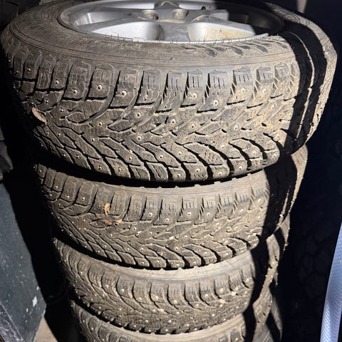 Myydään todella hyvät Volvon 17 tuumaiset nastarenkaat. Kaikki nastat tallella ja pintaa todella hyvin. Kahdessa vanteessa vähän nirhaumaa. Ei mitään vakavampaa.