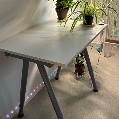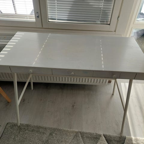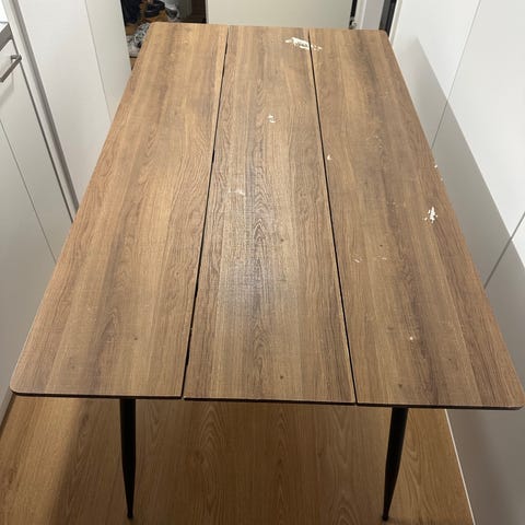 Annetaan ilmaiseksi kuvan pöytä. On ollut itsellä sekä ruoka- että työpöytänä. Kolhuja on reippaasti ja elämä näkyy.