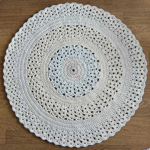 Käyttämätön virkattu matto trikookuteesta halkaisija noin 140cm.