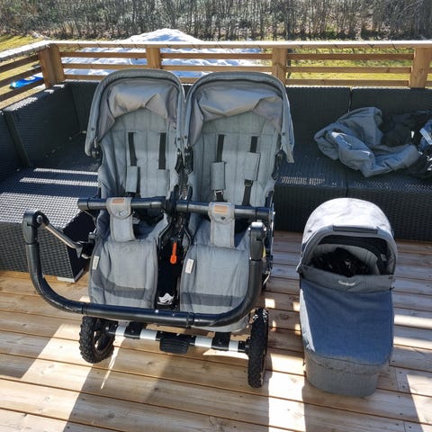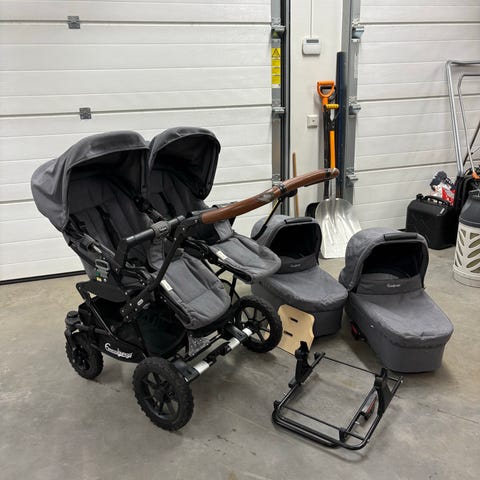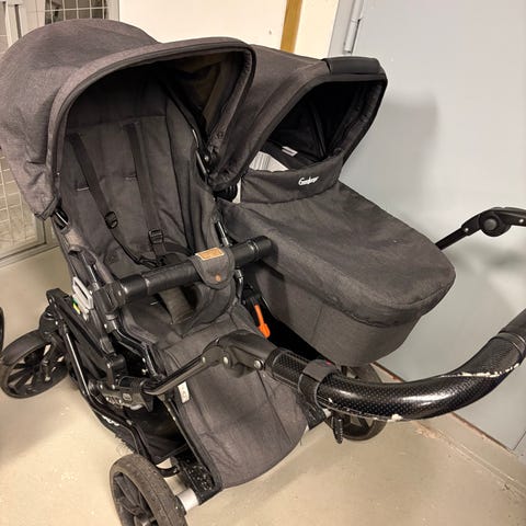 Myydään hyväkuntoiset beiget Emmaljungan Double Vikingit kahdella ratasistuimella.
