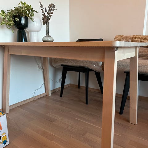 Tyylikäs IKEA Norråker ruokailuryhmä. Materiaali koivua (umpipuuta). Sekä tuolit että pöytä ovat tukevia ja jämäköitä eivätkä heilu. Koko setti on hyvässä kunnossa, mutta pieniä huomaamattomia ajan tuomia naarmuja toki on. Myydään muuton alta pois :-)